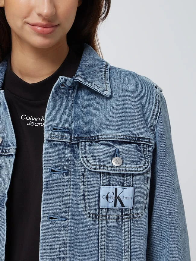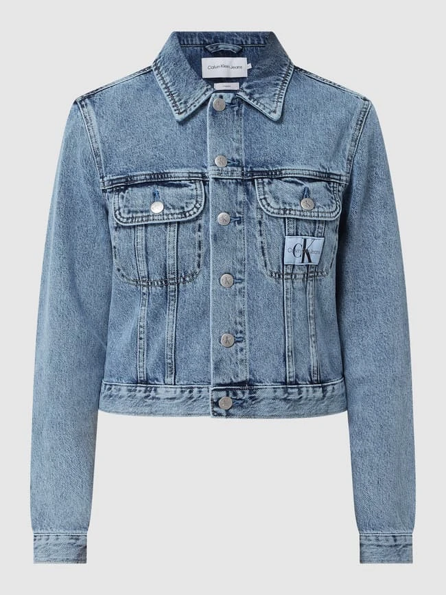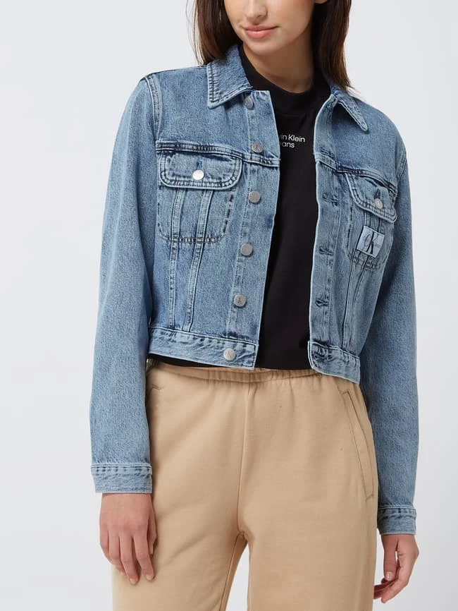 Die Jeansjacke von Calvin Klein Jeans ist aus reiner Baumwolle gefertigt. Sie kommt in verkürzter Passform mit Umlegekragen und geknöpften Pattentaschen.