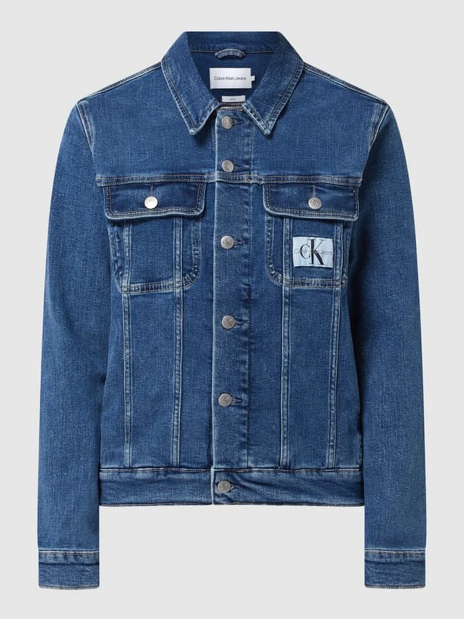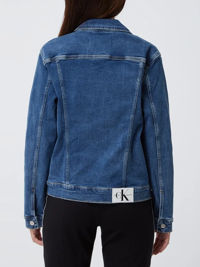 Die Jeansjacke von Calvin Klein Jeans ist aus einem Baumwoll-Elasthan-Mix gefertigt und gerade geschnitten. Sie zeigt sich mit Umlegekragen, Knopfleiste und Brusttaschen.