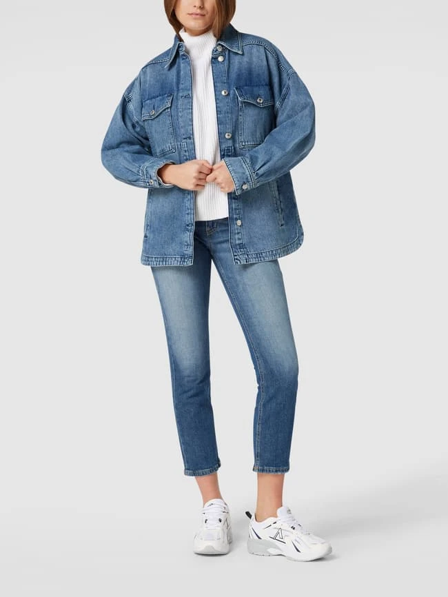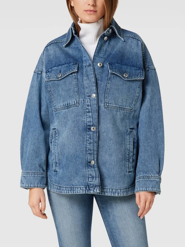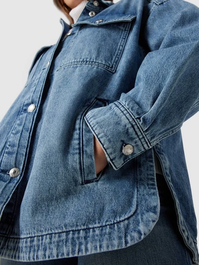 Die Jeansjacke von DRYKORN ist aus reiner Baumwolle gefertigt und im Oversized Stil gehalten. Sie kommt mit Umlegekragen, Pattentaschen auf der Brust und seitlichen Leistentaschen.