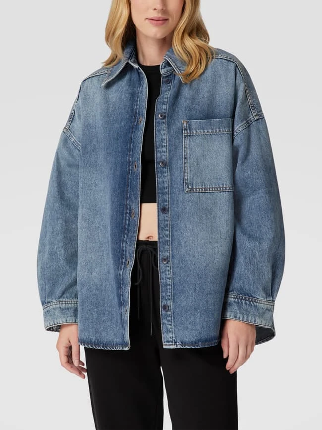 Die Jeansjacke von DRYKORN ist aus reiner Baumwolle gefertigt und im Oversized-Look gehalten. Sie kommt mit Kentkragen, aufgesetzter Brusttasche, durchgehender Knopfleiste und Sportmanschetten.