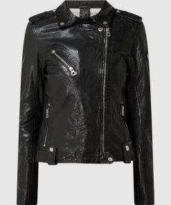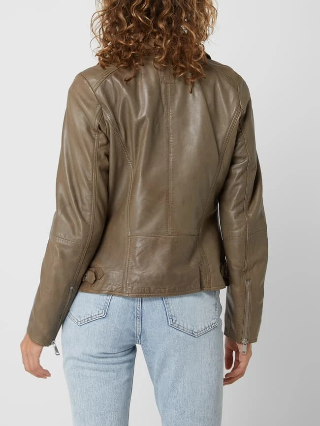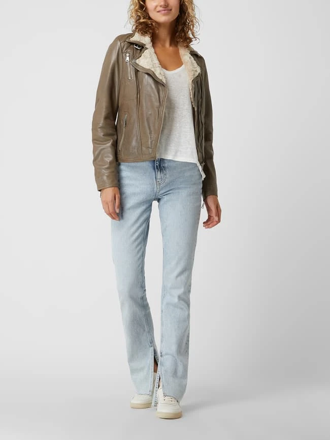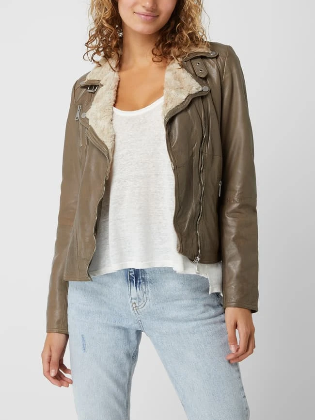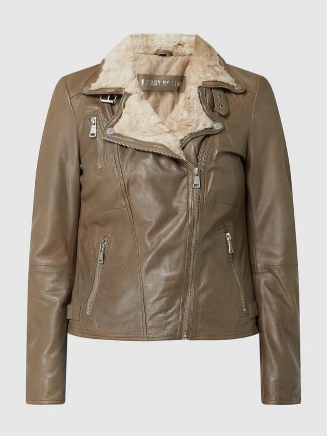 Die Lederjacke von Freaky Nation ist aus echtem Leder gefertigt und tailliert geschnitten. Sie zeigt sich im Biker-Look mit Zip-Details, Webpelzfutter und Wattierung.