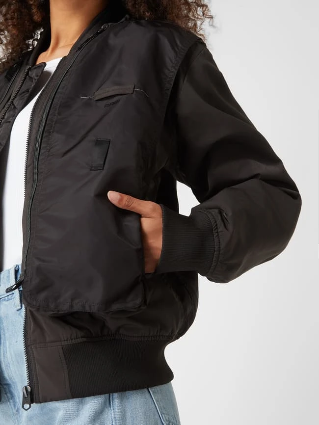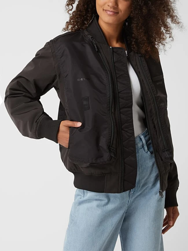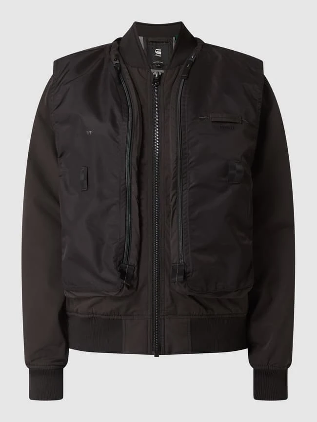 Der Bomber von G-Star RAW ist aus strapazierfähigem Material gefertigt und locker geschnitten. Er kommt im 2-in-1-Look mit Stehkragen, Reißverschlusstaschen und Logo-Details.