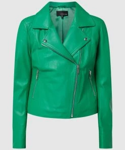 Die Lederjacke von Jilani ist aus echtem Leder gefertigt und tailliert geschnitten. Sie zeigt sich mit Umlegekragen, Reißverschlusstaschen und Kontrastnähten.