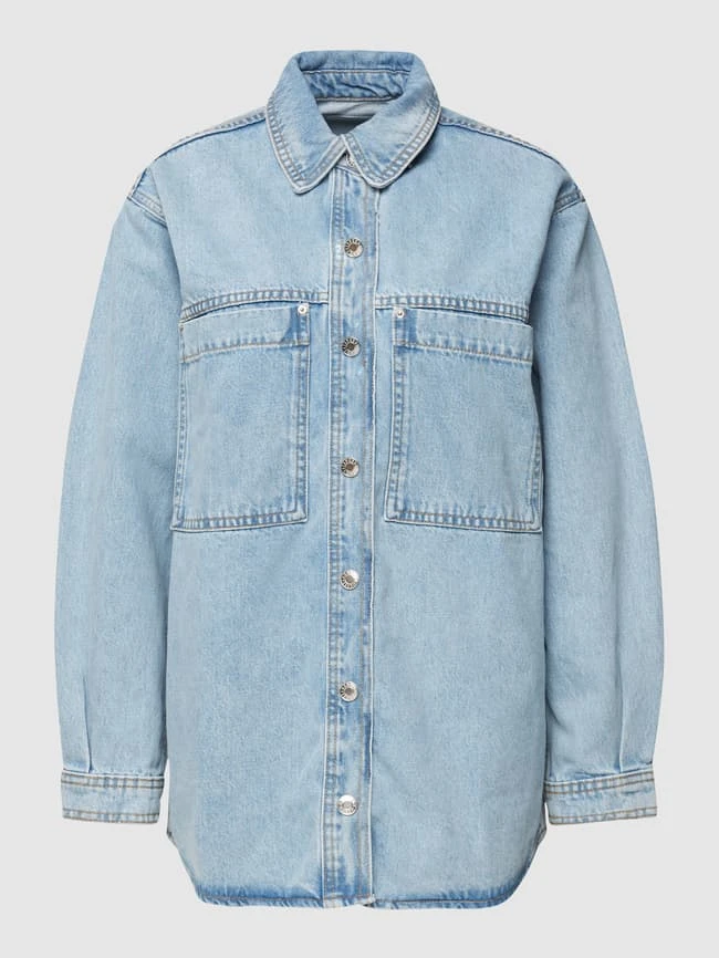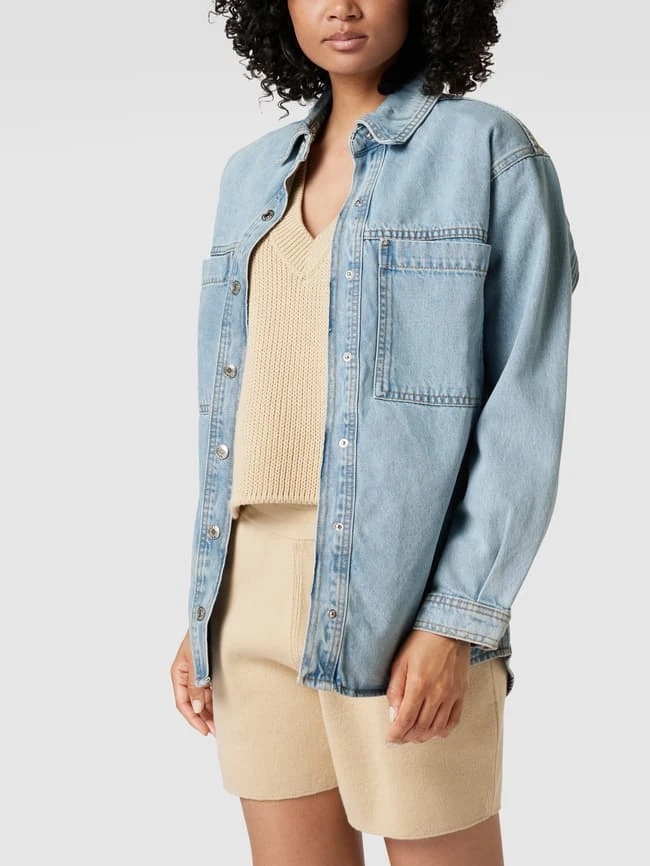 Die Jeansjacke von MANGO ist aus reiner Baumwolle gefertigt und gerade geschnitten. Sie zeigt sich mit Brusttaschen, durchgehender Knopfleiste und Umlegekragen.
