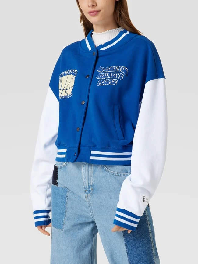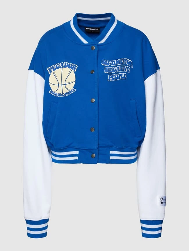 Die College-Jacke von PEGADOR ist aus einem Baumwoll-Mix mit Stretch-Anteil gefertigt und im Oversized-Look gehalten. Sie kommt mit Stehkragen und Label-Stitching.