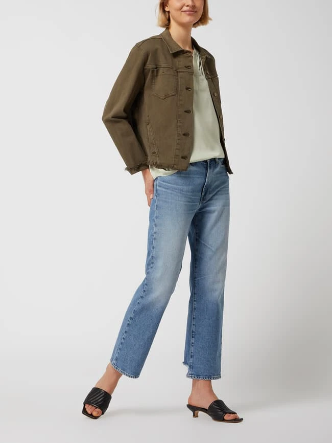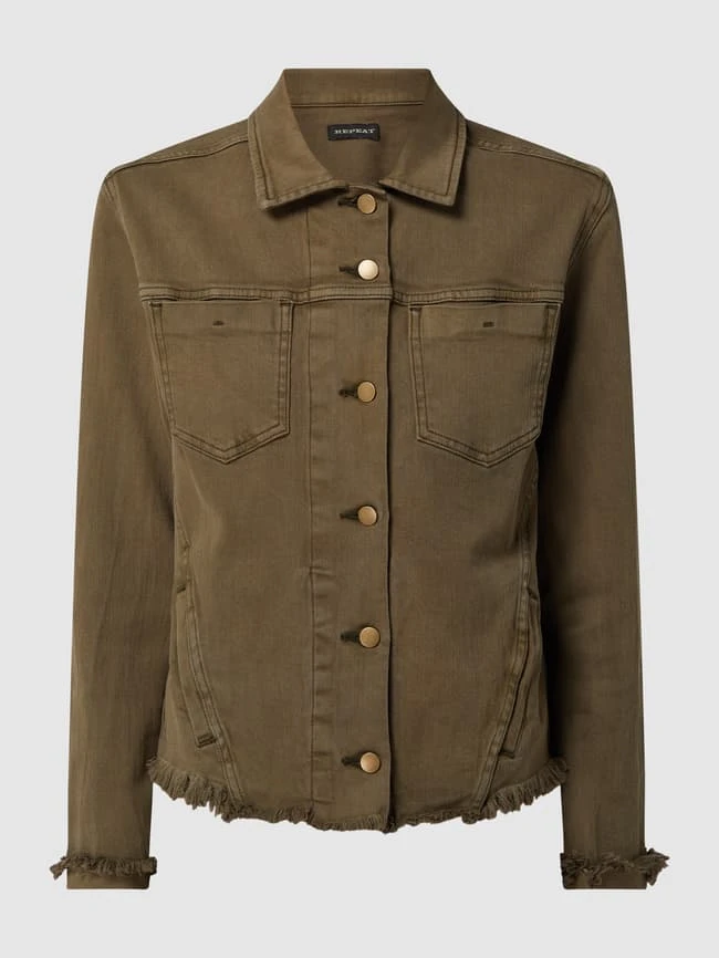 Die Jeansjacke von Repeat ist aus einem Baumwoll-Elasthan-Mix gefertigt und locker geschnitten. Sie kommt mit Umlegekragen, Knopfleiste und Eingrifftaschen.