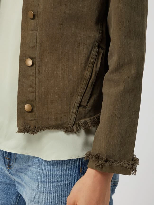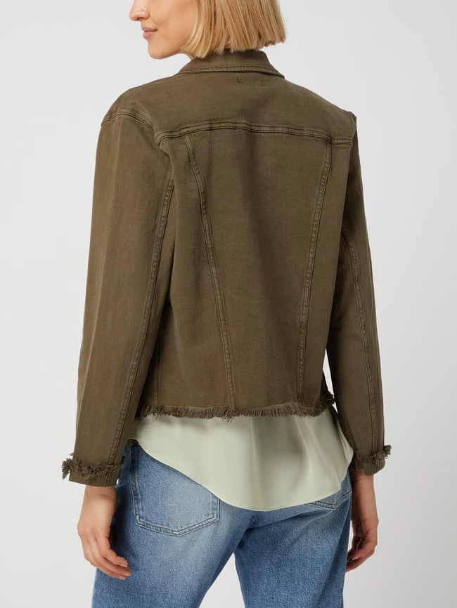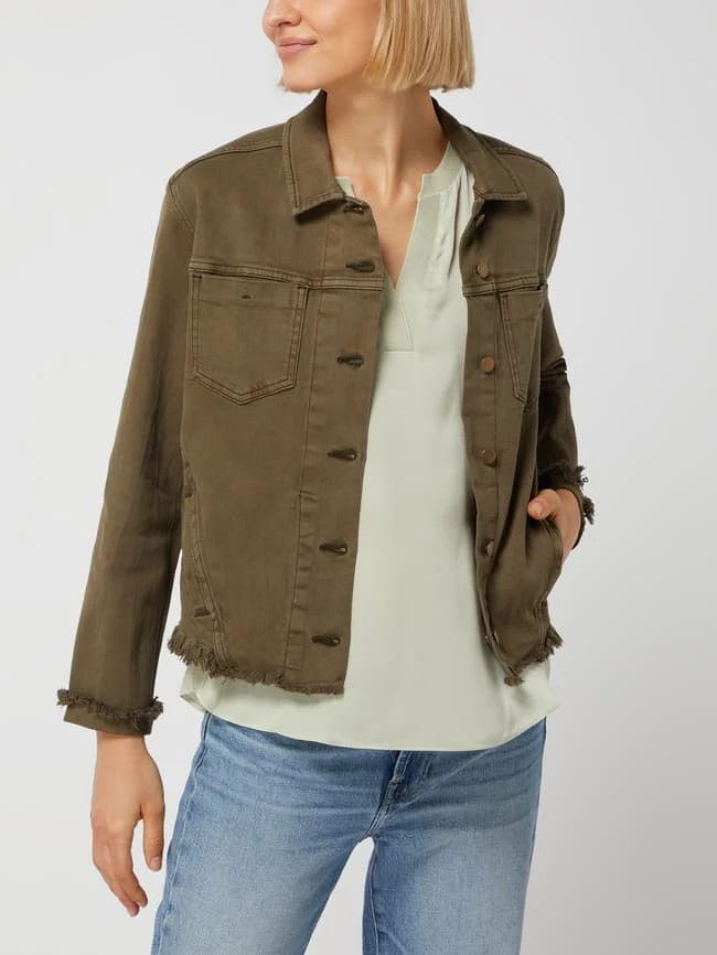 - Ausgefranste Abschlüsse an Ärmeln und Saum