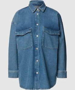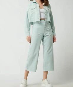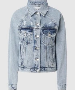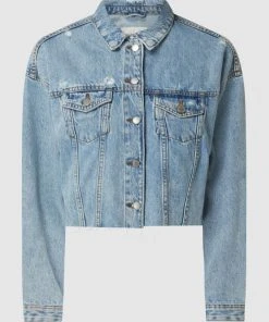 Die Jeansjacke von REVIEW ist aus reiner Baumwolle gefertigt und verkürzt geschnitten. Sie zeigt sich mit Umlegekragen und Pattentaschen.