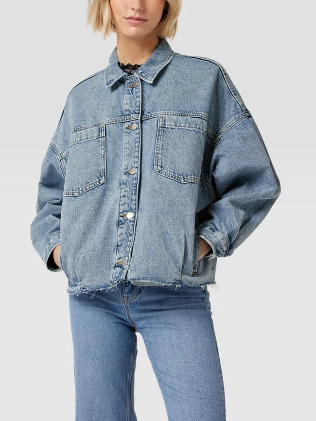 Die Jeansjacke von REVIEW ist aus reiner Baumwolle gefertigt und kommt in verkürzter Passform im Oversized Fit. Sie zeigt sich im Used-Look mit Kentkragen und abgeschnittenem Saum mit elastischem Einsatz.