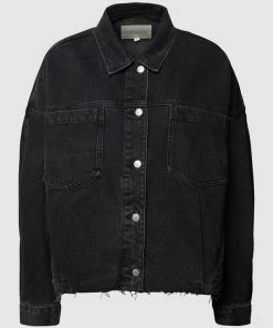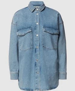 Die Jeansjacke von REVIEW ist aus Denim gefertigt. Sie kommt im Oversized-Look mit Umlegekragen, Knopfleiste und Eingrifftaschen.