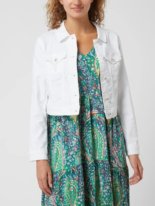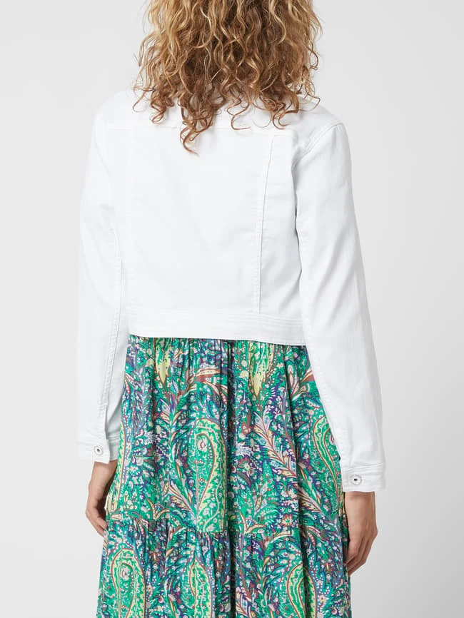 Die Jeansjacke von ROBE LÉGÈRE ist aus einer Baumwollmischung mit Stretch-Anteil gefertigt. Sie kommt in verkürzter Passform mit Umlegekragen und geknöpften Pattentaschen.