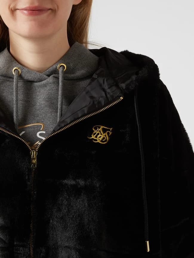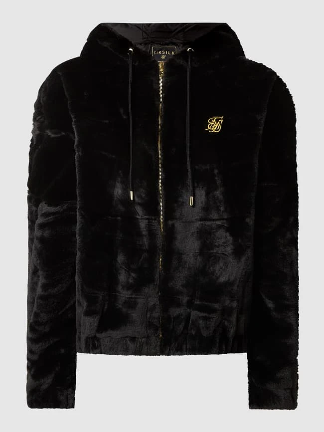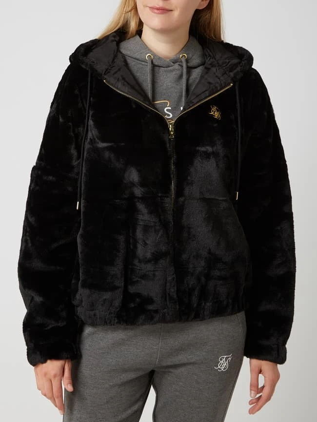 Das Blouson von SikSilk ist aus Kunstpelz gefertigt und locker geschnitten. Es zeigt sich mit Kapuze, Reißverschluss und aufgesticktem Logo.